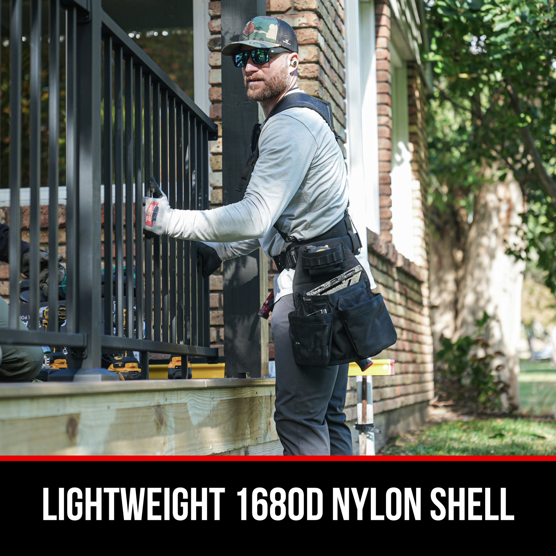 • Made from durable 1680D Nylon Wide-mouth quick-access tape measure pocket
